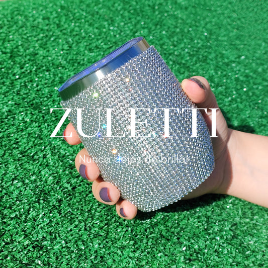 Vaso térmico Zuletti con brillos / cristales / pedrería brillante de 12 oz/355 ml. Color plateado
