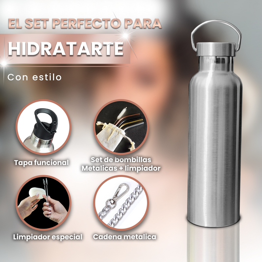 Termo de Acero Inoxidable ZULETTI Pro | Set Completo + Bombillas Reutilizables | 2 Tapas (Deportiva y Clásica) | Hidratación Eco