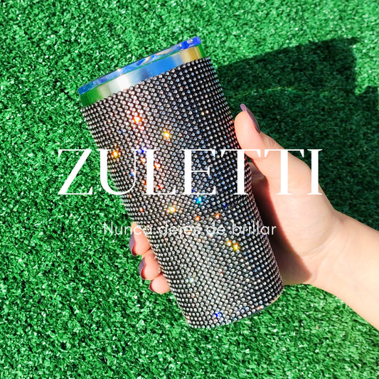 Vaso térmico Zuletti con brillos, tazón brillante de 600 ml con tapa antiderrames. Color negro