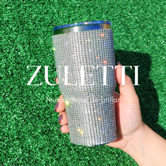 Vaso térmico Zuletti con brillos, tazón brillante de 600 ml con tapa antiderrames. Color plateado