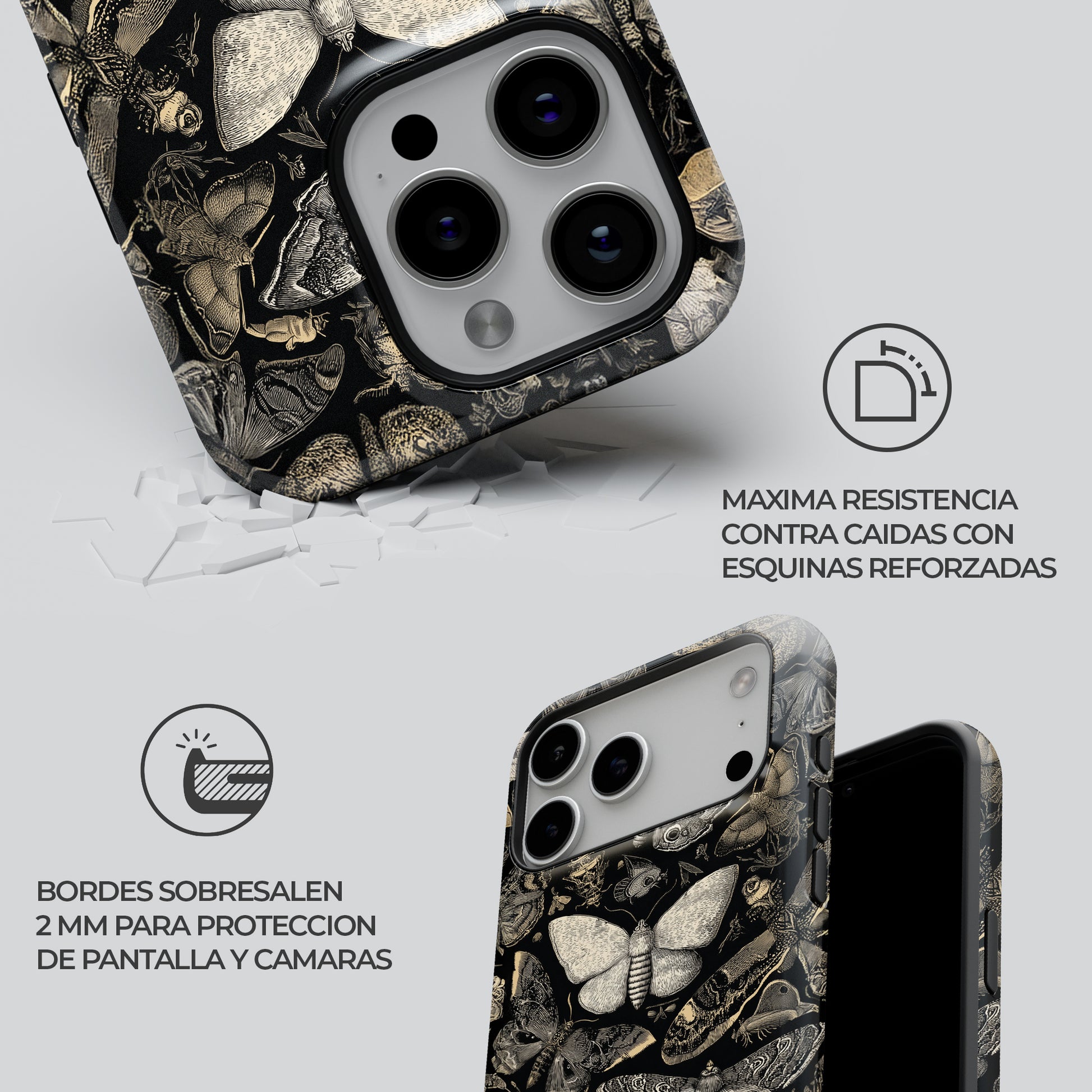 Canaliza tu vibe más misterioso con Cabinet Moth. Su diseño intrincado de mariposas es el statement piece gótico que inyecta carácter y un look atemporal a tu feed. Su slim fit es puro estilo sin volumen, con protección shock-proof que te da cero pánico a las caídas. ¡Presume tu lado dark-academia!