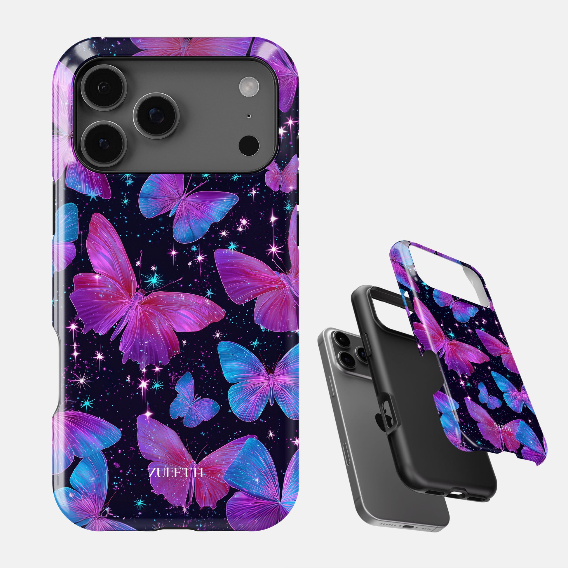 Deja que tu vibe brille con Cosmic Wings. Sus mariposas de neón son el statement piece mágico que necesitas para un feed hipnótico. Su slim fit con protección shock-proof te da cero pánico a las caídas, permitiéndote lucir un estilo viral sin volumen.