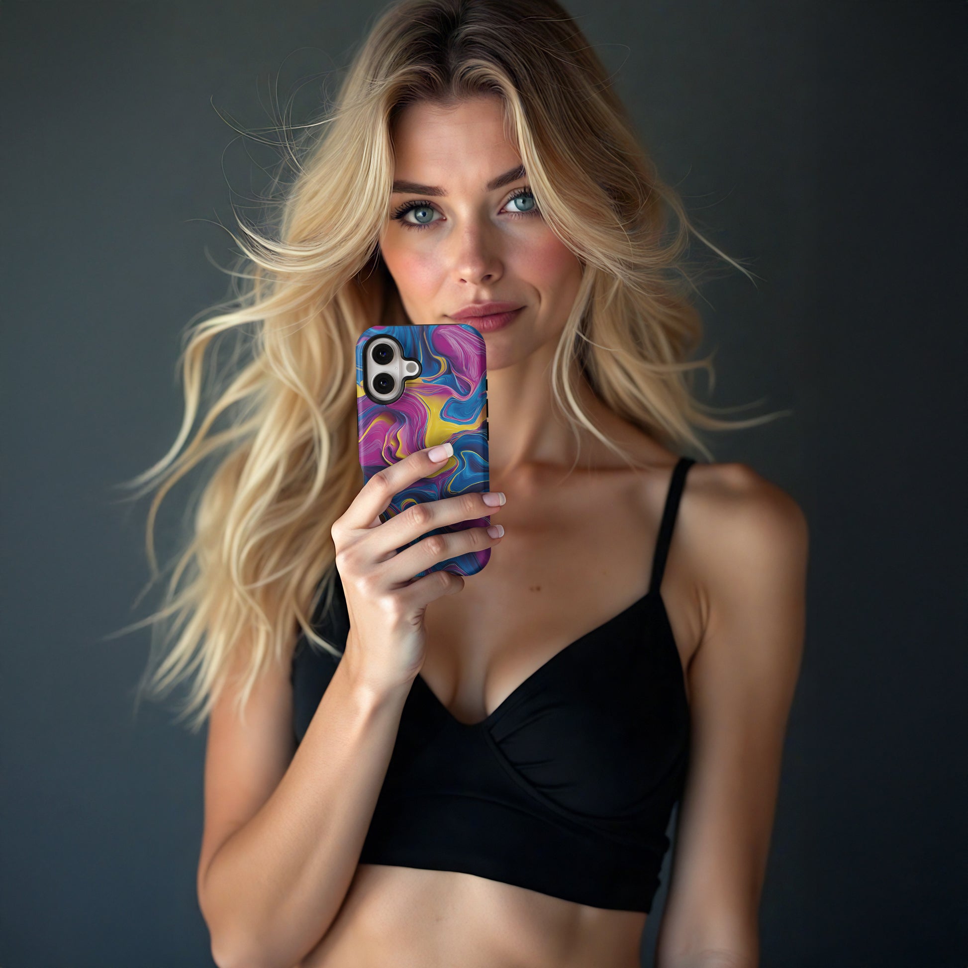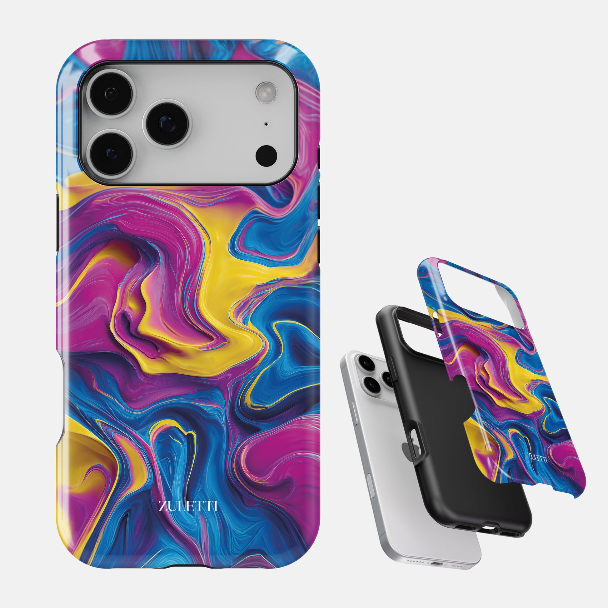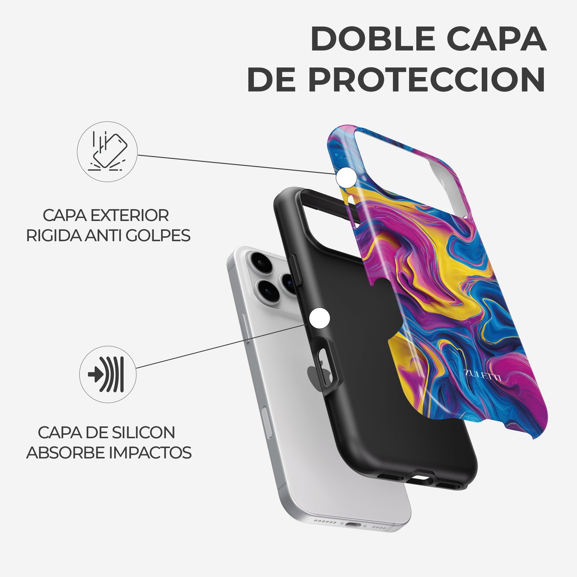 ¡Tu vibe es una obra de arte! Pasa de lo ordinario a lo extraordinario con Electro Flow. Su patrón vibrante de colores neón es el statement piece que inyectará una dosis de energía a tu aesthetic. Disfruta el slim fit y olvida el "pánico al soltar el teléfono"; su protección shock-proof es pura confianza. ¡Demuestra tu arte interior y únete a la familia!