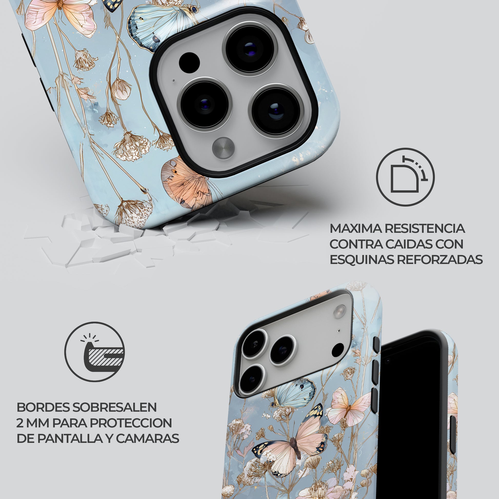 ¡Tu vibe es pura poesía en movimiento! con Ethereal Flight. Su ilustración de mariposas y flores es el statement piece delicado que inyecta paz, dulzura y un look elegante a tu feed. Su slim fit es puro estilo sin volumen, con protección shock-proof que te da cero pánico a las caídas. ¡Presume tu lado más soñador!