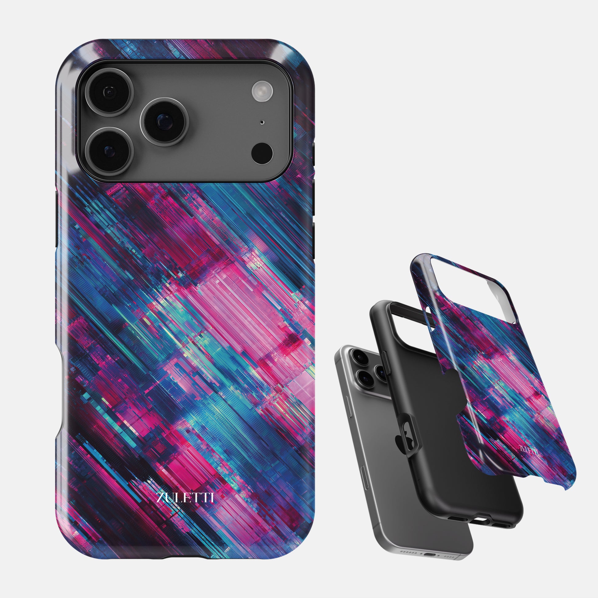 ¡Tu estilo, una señal sin censura! con Glitch Rave. Su patrón de falla digital es el statement piece cibernético que inyecta energía, color y un look viral a tu feed. Su slim fit es puro estilo sin volumen, con protección shock-proof que te da cero pánico a las caídas. ¡Presume tu vibe más edgy!