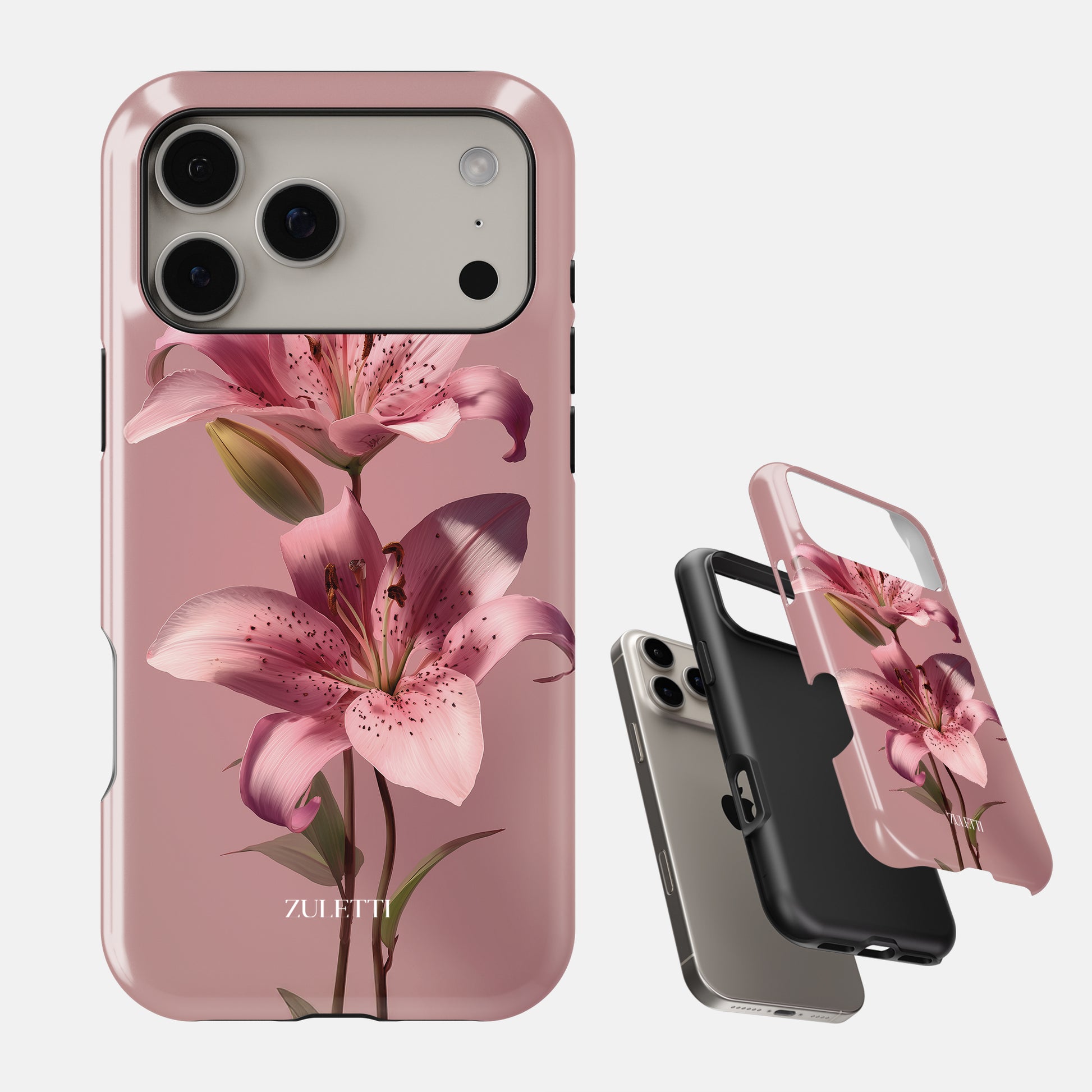 Deja que tu vibe florezca con Pink Lily. Su diseño minimalista de lirios es el statement piece femenino que inyecta glamour y compliments a tu feed. Su slim fit es puro estilo sin volumen, con protección shock-proof que te da cero pánico a las caídas. ¡Define tu delicadeza!