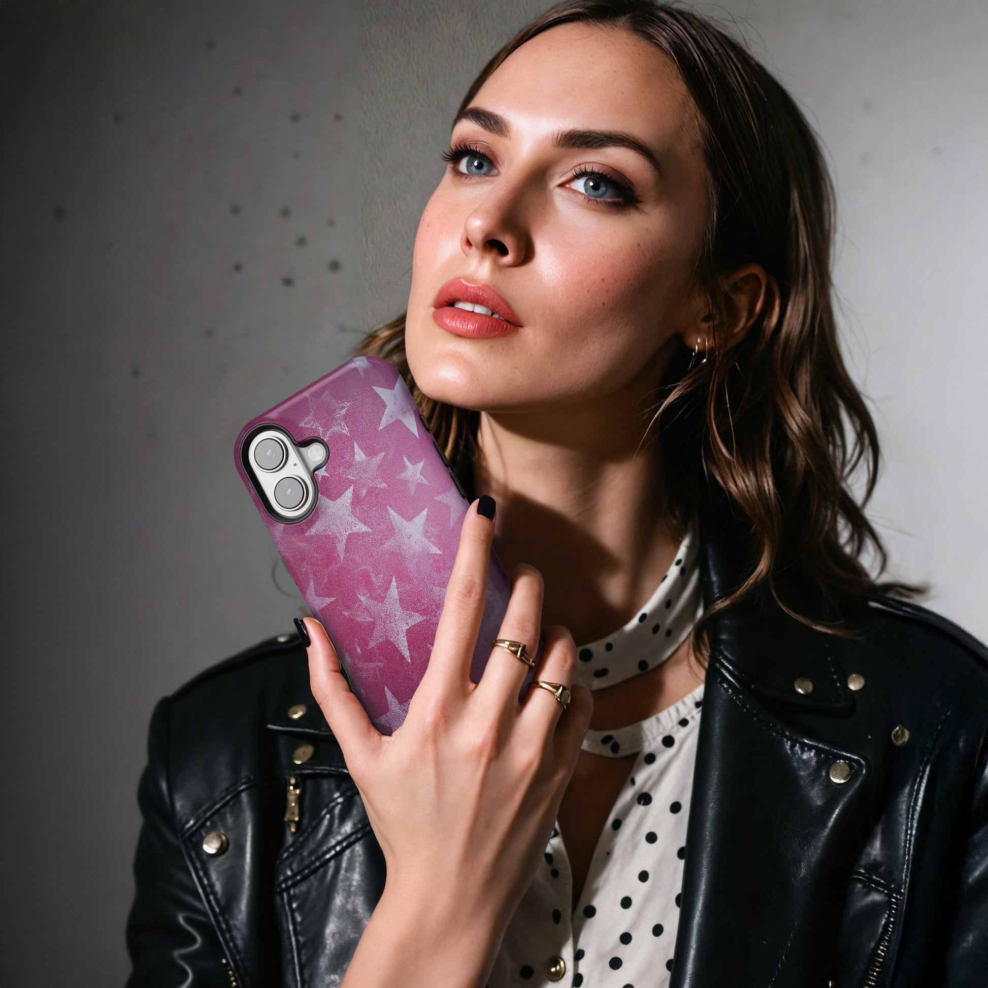 ¡Tu estilo, en modo estelar! con Star Dust. Su patrón de estrellas grunge-chic es el statement piece audaz que inyecta vibras místicas a tu feed. Su slim fit es puro glamour sin volumen, con protección shock-proof que te da cero pánico a las caídas. ¡Deja tu huella cósmica y únete a la familia!