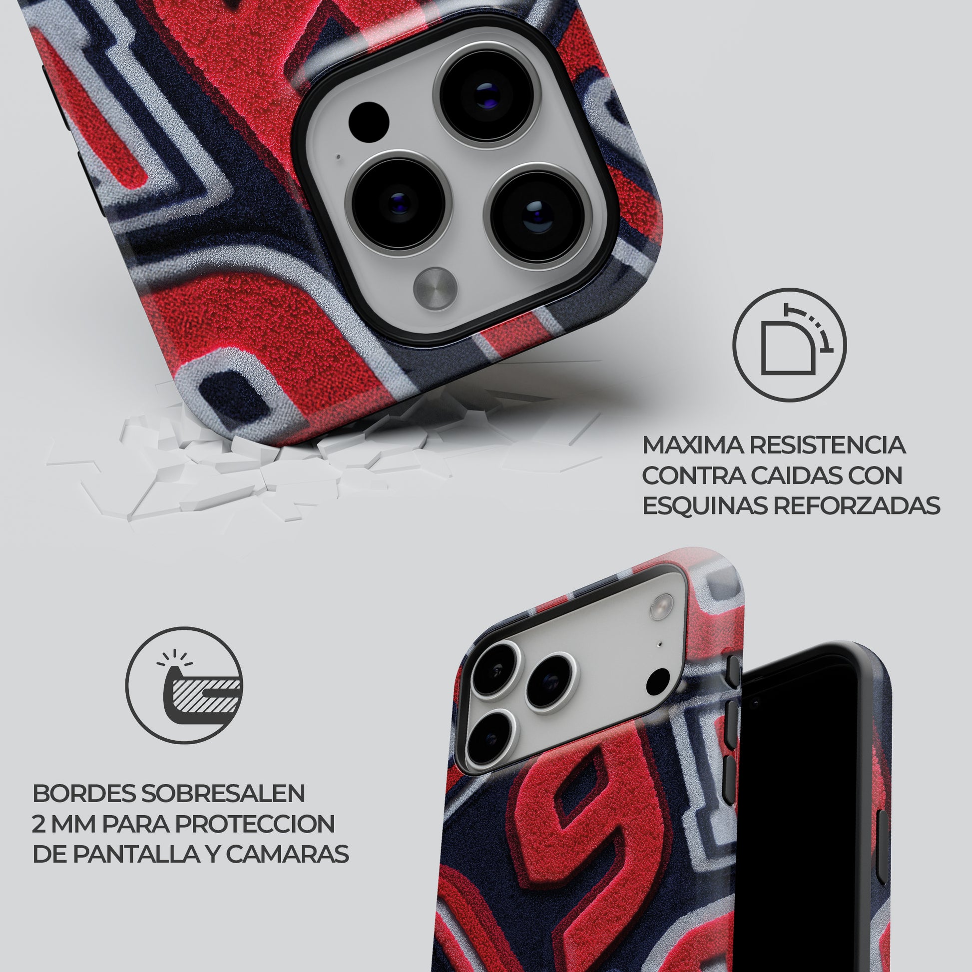 ¡Tu vibe es puro touchdown! con Varsity Pop. Su textura chenilla 3D es el statement piece deportivo que inyecta energía y compliments a tu feed. Su slim fit es puro estilo sin volumen, con protección shock-proof que te da cero pánico a las caídas. ¡Presume tu lado college con fuerza!