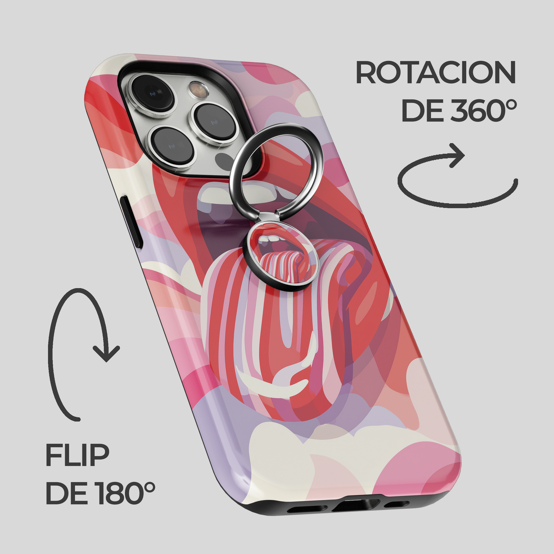 Pasa tu dedo por el anillo y olvídate del miedo a que se te caiga el teléfono. Ya sea tomándote selfis, grabando reels o simplemente chateando, tendrás un agarre firme y cómodo.